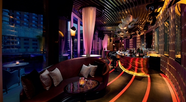 绯酒吧位于北京康莱德酒店裙楼5层顶层,由日本Spin事务所设计,室内的酒吧设有3种风格迥异的区域以满足不同的社交需求,随着音乐变换的波浪形LED灯效从舞池中央向外蔓延,日式风情庭院最适合喜爱享受户外的客人。绯酒吧酒单选择多样,除了倍受欢迎的特色鸡尾酒、经典鸡尾酒系列、香槟、新旧世界的葡萄酒、洋酒外,更有丰盛的美味餐点以满足派对狂热分子的需求;此外,绯酒吧还备有多款顶级雪茄。