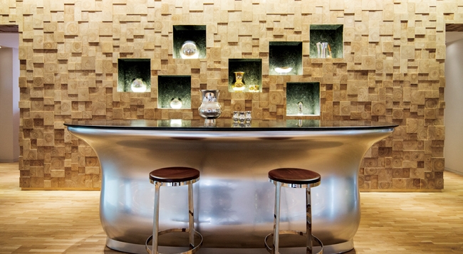 位于淮海中路上的Hermès Maison 气派非常,古典之中透露出现代设计感。占地284 平方米的3 楼是爱马仕家居世界,包括家具、织物、瓷器、水晶制品,以及适用于海边度假或外出野餐等活动的运动休闲类产品。此外,这里还设有银器世家博艺府家(Puiforcat) 香槟吧La Timbale,石材桌面的银色吧台在法国上漆制作。香槟吧选用了博艺府家的银质平底大口酒杯,向客人提供一系列顶级法国香槟,同时提供简单轻食及咖啡茶点,而甜品则由著名餐厅Franck Bistro 提供,是淮海中路上一处私密的约会好地方。